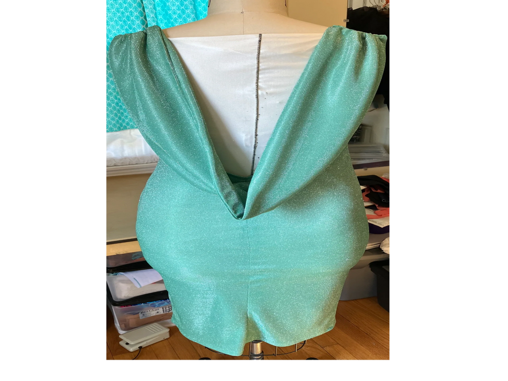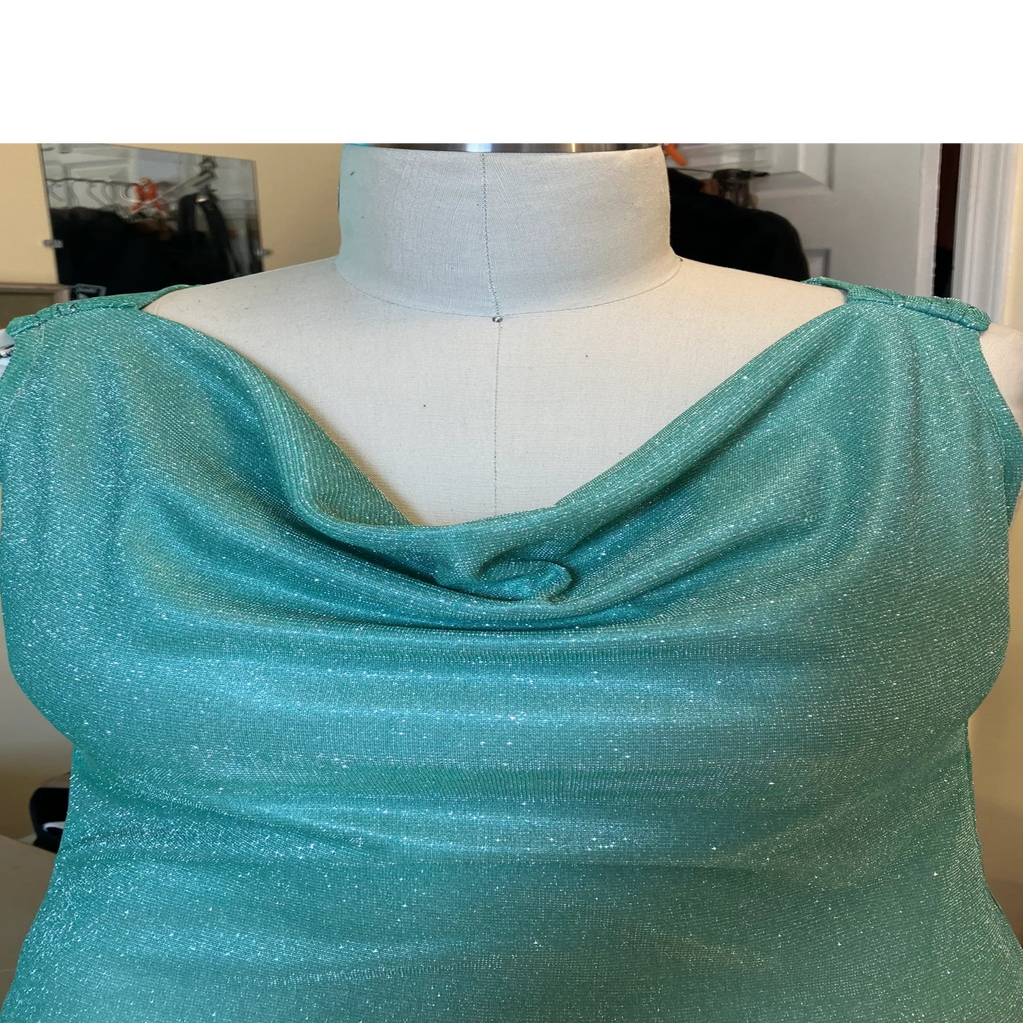Custom Made Mermaid Green Sparkle cocktail dress. Cowl in front and back necklines.